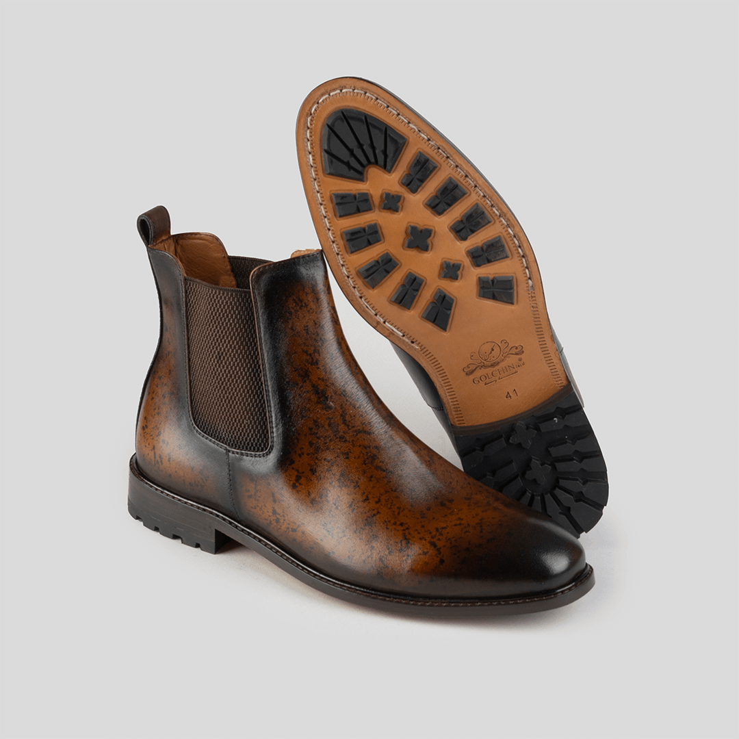چلسی پتینه مردانه – رنگکاری دستی روی چرم کراست با زیره چرم طبیعی