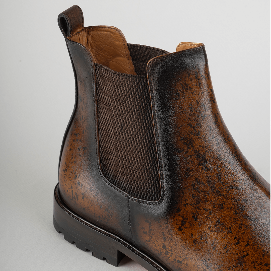 بوت چلسی تمام چرم دست دوز پتینه (دست رنگ)