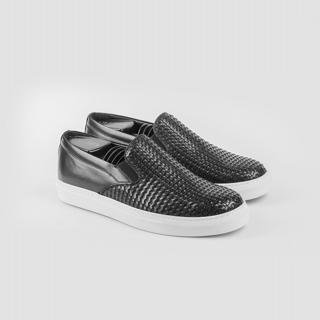 کفش مردانه مدل ونس – طراحی بدون بند با رویه حصیری دستبافت و چرم بوفالو وارداتی، زیره Thegom ترکیه (دوختهشده به رویه)