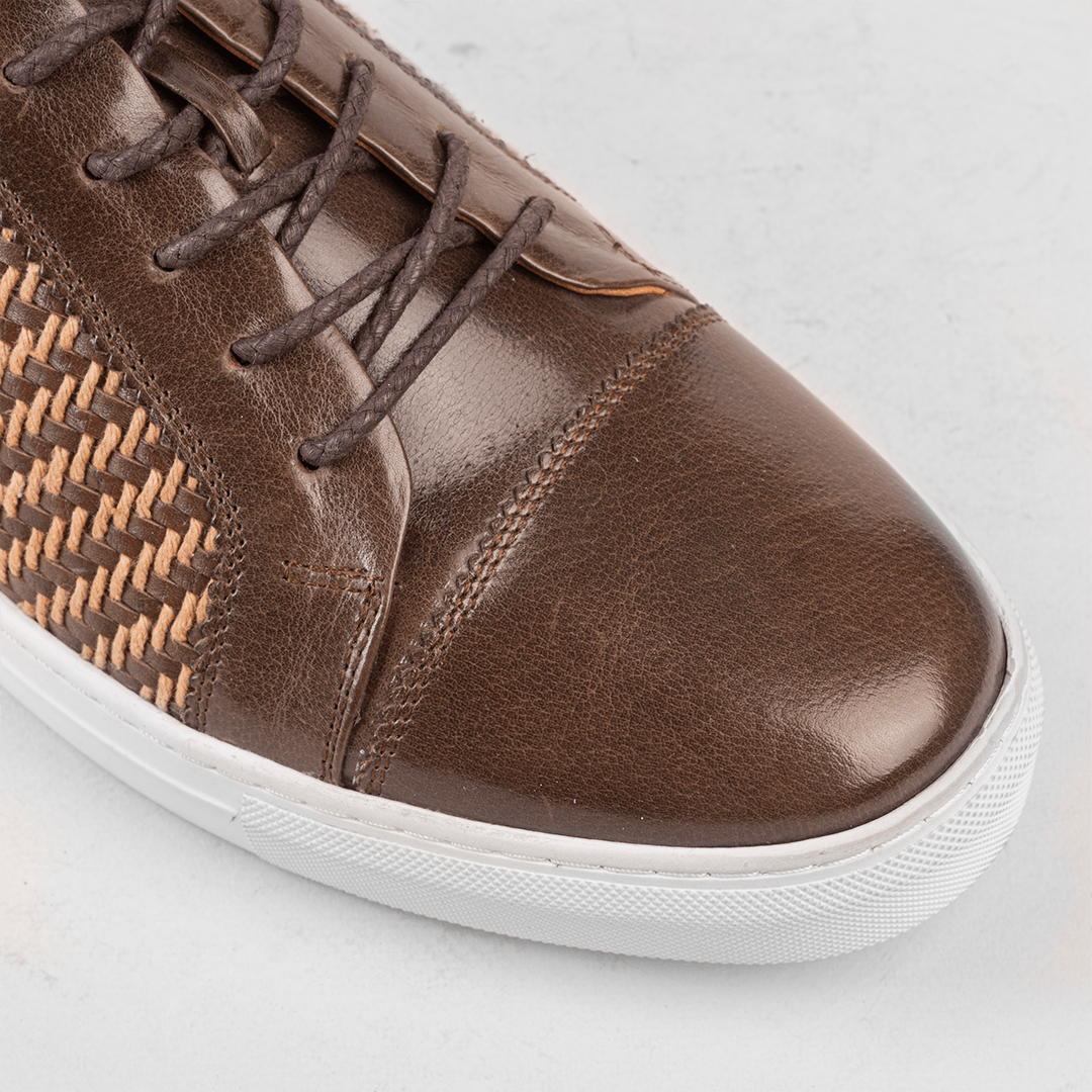 کفش مردانه مدل ونس – ترکیب حصیربافت دستدوز و چرم طبیعی بیبی بوفالو وارداتی از هند، با زیره وارداتی Thegom (دوختهشده به رویه)