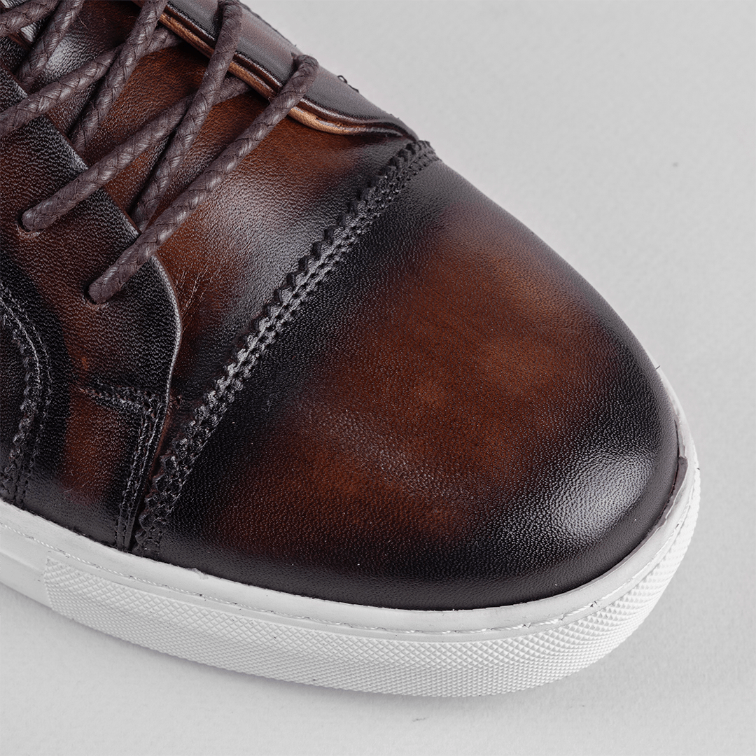 رویهی کفش از چرم کراست گاوی ساخته شده که رنگ آن بهصورت دستی اعمال شده است. این روش رنگکاری، جلوهای طبیعی و خاص به چرم میدهد و باعث میشود هر جفت کفش، هویت رنگی مخصوص خود را داشته باشد. سطح نیمهمات چرم در عین سادگی، جلوهای اصیل و متفاوت ایجاد میکند.